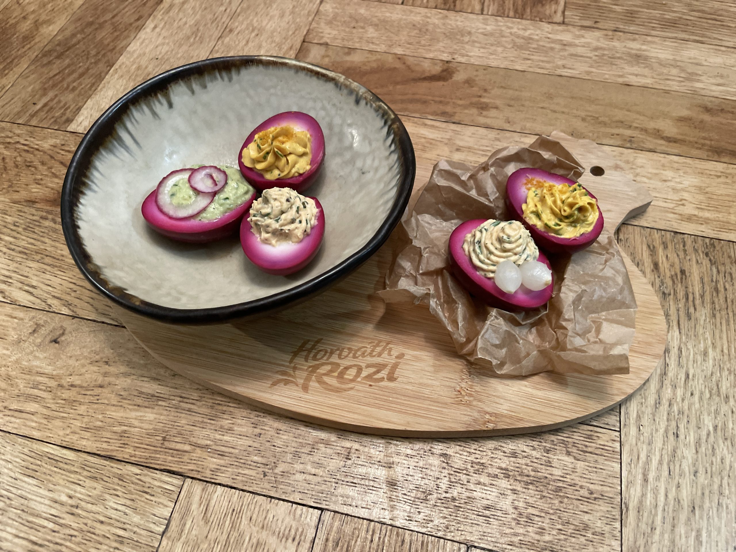 Rózsaszín töltött tojás